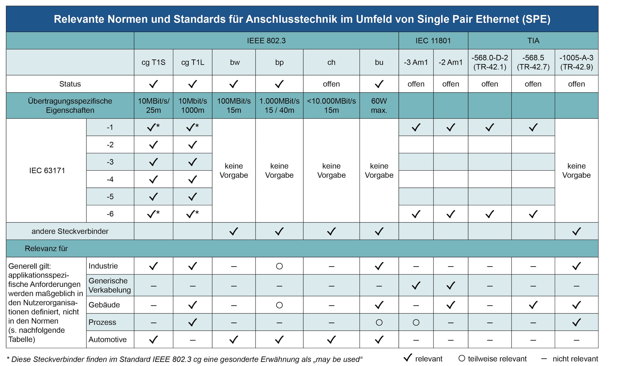 Bild 2: Relevante Normen und Standards für SPE- Anschlusstechnik