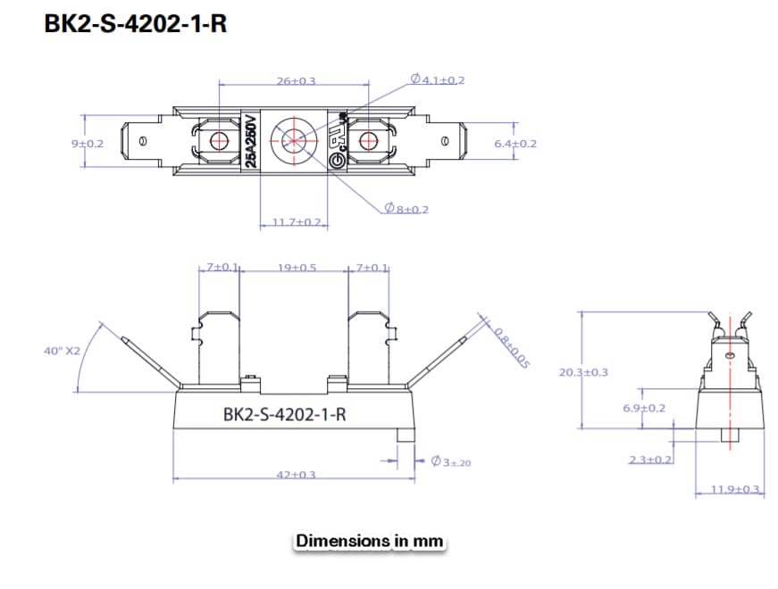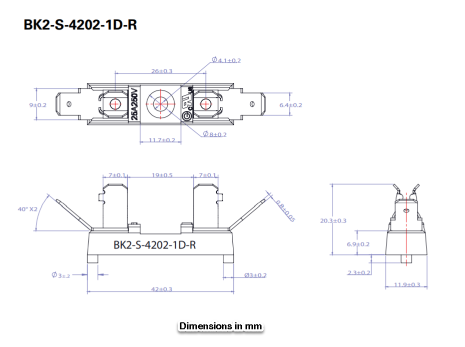 Eaton Electronics S-4000 Series Fuse Holders feature quick connect termination style and 1/4” x 1-1/4” fuse block. These fuse holders come with panel style mounting, 1 pole, and available in black color. The S-4000 fuse holders offer a 25A current rating and a 250VAC voltage rating.Features