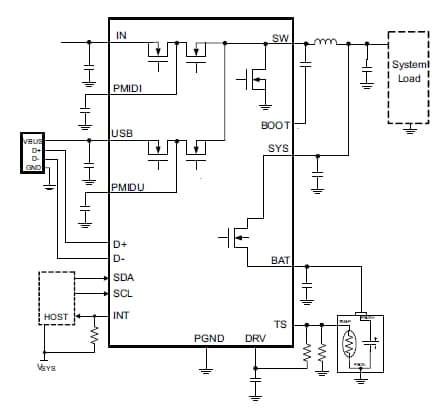 - Dual Input, Integrated FET Charger for up to 2.5A Charging